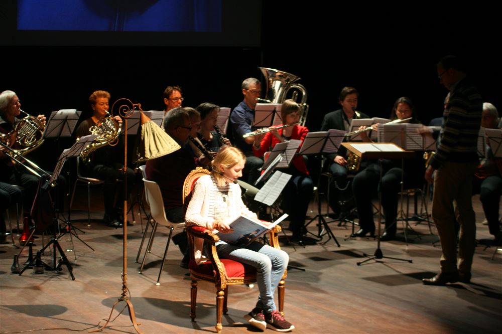 Vertelling met muziek en beeld door muzikanten van harmonie Concordia.